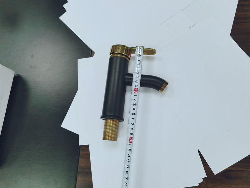 Name: Small faucet with golden handle and black main body